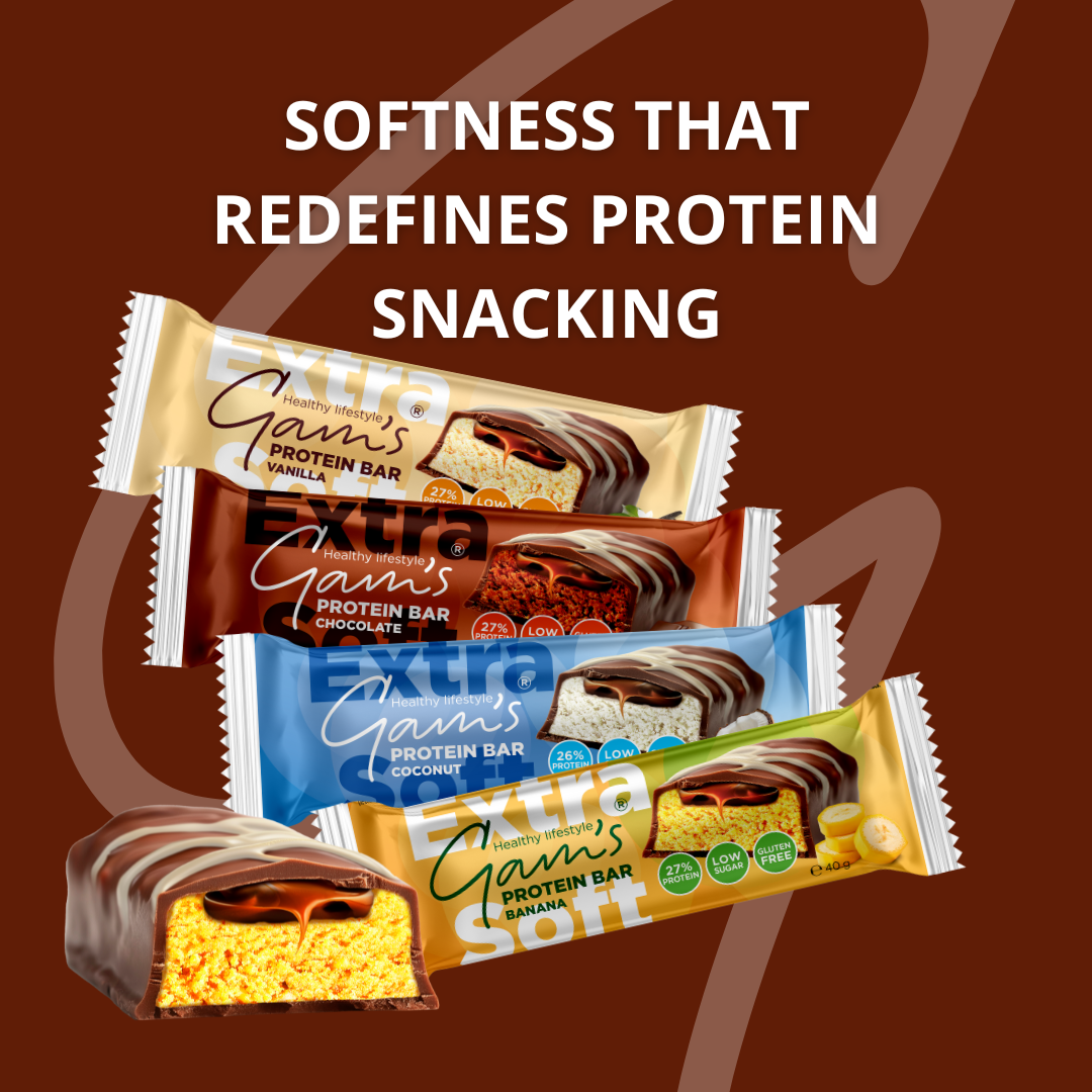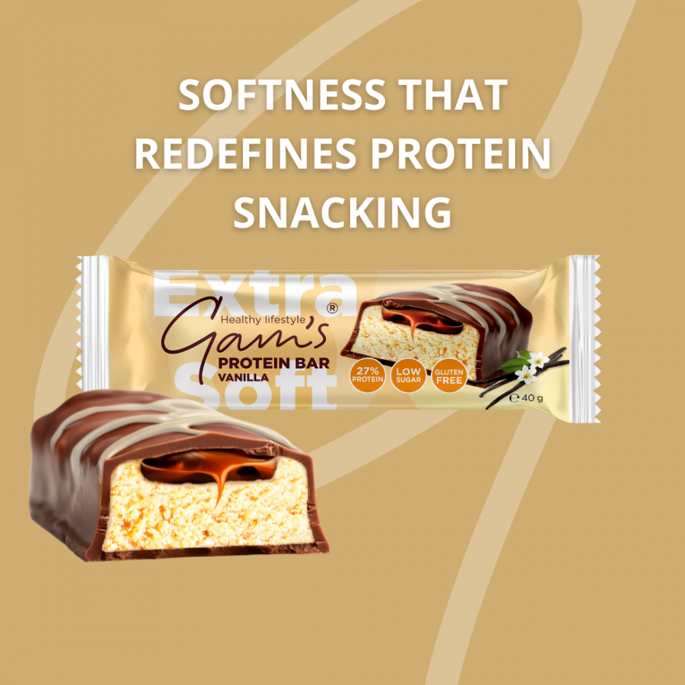 Our Gam’s Protein Extra-Soft Bars redefine protein snacking with a unique extra-soft structure that stands apart from traditional chewy bars. The smooth bite and balanced taste make them a perfect choice for anyone seeking both pleasure and performance.