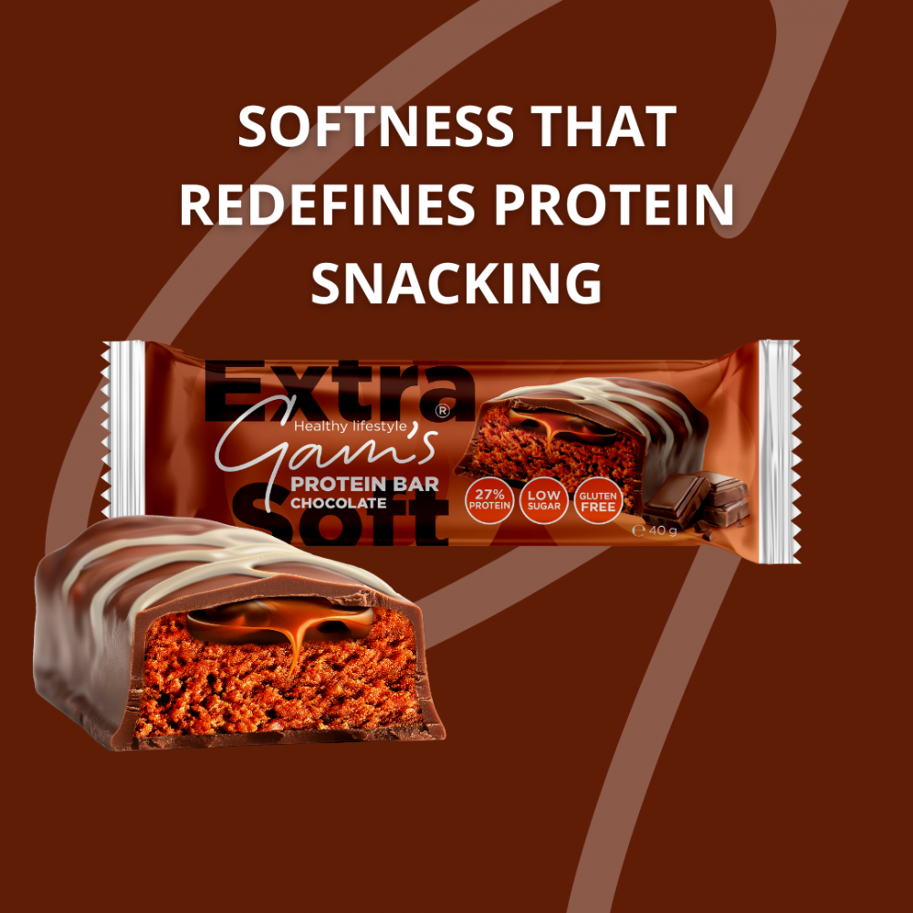 Our Gam’s Protein Extra-Soft Bars redefine protein snacking with a unique extra-soft structure that stands apart from traditional chewy bars. The smooth bite and balanced taste make them a perfect choice for anyone seeking both pleasure and performance.