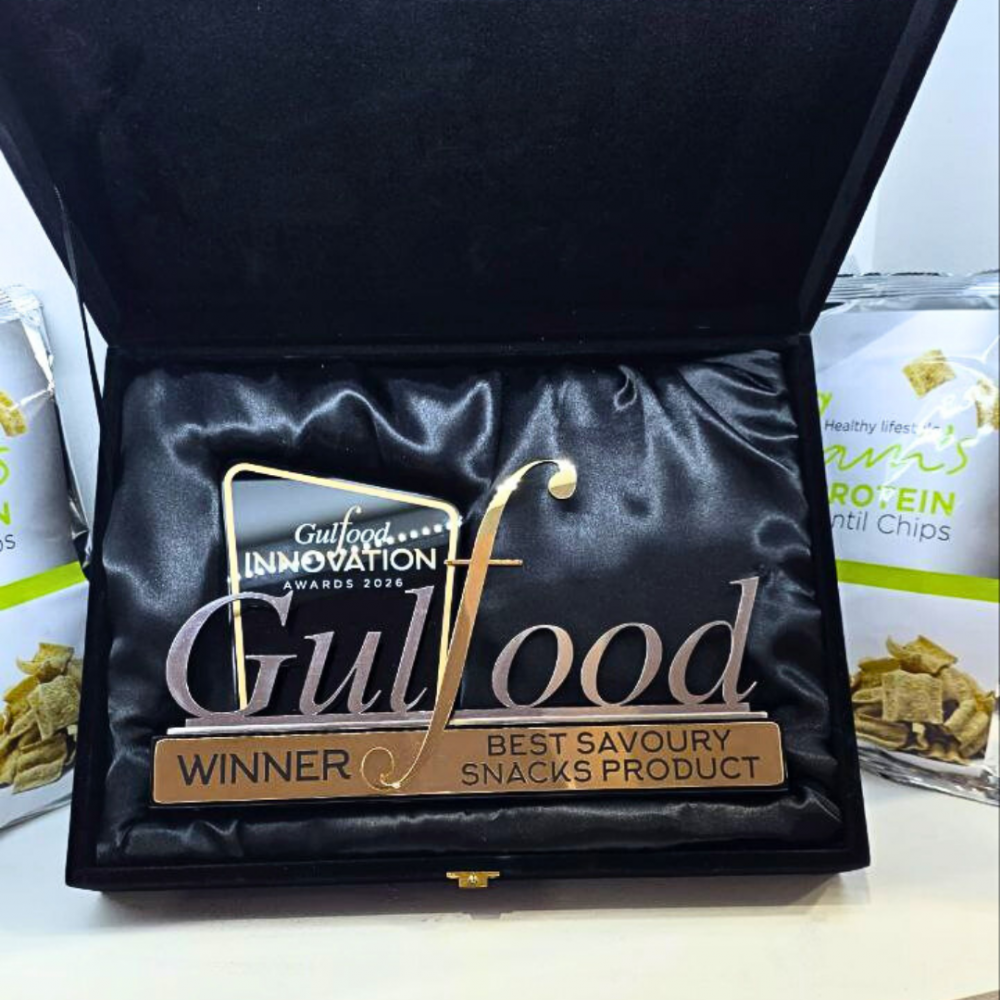 Nous sommes venus à Dubaï avec une mission : prouver que les snacks riches en protéines peuvent avoir un goût incroyable. Aujourd'hui, le Gulfood 2026 l'a officiellement confirmé. C'est avec une immense fierté que nous annonçons que nos GAM'S PROTEIN LENTIL CHIPS, au succès commercial déjà affirmé, ont remporté le prix prestigieux du Best Savoury Snack Product.